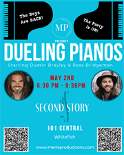 Dueling Pianos at 101 Central’s Second Story is a high-octane, request-driven live music party starring Dustin Brayleyand Ross Bridgeman—two powerhouse performers battling (and blending) their way through the greatest hits of every era. Think part concert, part comedy, and 100% crowd-fueled from the first note to the last.