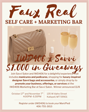 Join us for an exclusive evening celebrating women, wellness, and marketing empowerment in the heart of the Flathead Valley. The Faux Real Self Care + Marketing Bar Experience is where luxury meets connection—brought to you by Savvi Salon and IWD406.