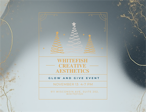Holiday Client Appreciation Event Glow and Give Whitefish Creative Aesthetics First 30 guests get a Glow Gift + 50% off treatment voucher Savings on gifts, treatments, and exclusive product bundles Complimentary gift-wrapping bar Personalized skin analysis & mini consultations