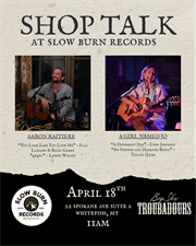 Join Big Sky Troubadours at Slow Burn Records for Shop Talk, an intimate, in-store interview series where music, stories, and community come together. Set against the surrounding collection of vinyl in the coolest record shop around, Shop Talk invites artists and creatives to share their journeys, influences, and behind-the-scenes insights.