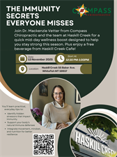 Join Dr. Mackenzie Vetter from Compass Chiropractic and the team at Haskill Creek for a quick mid-day wellness boost designed to help you stay strong this season. Plus enjoy a free beverage from Haskill Creek Cafe!